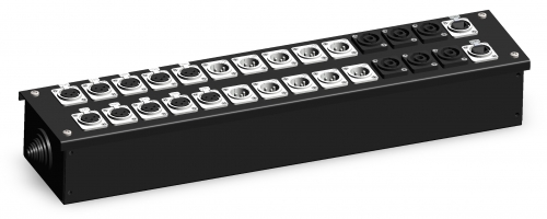 10*XLR3F, 10*XLR3M, 2*RJ-45, 6*Speakon-4 |