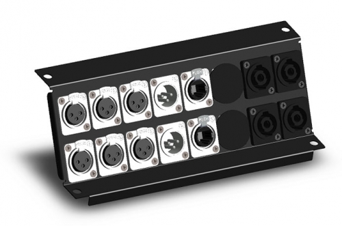 6*XLR3F, 2*XLR3M, 2*RJ-45 cat6-a, 4*Speakon-4 |