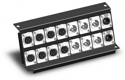 8*XLR3F, 6*XLR3M, 2*RJ-45 cat6-a |