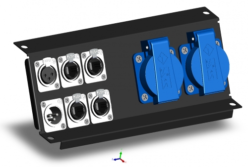 1*XLR3F, 1*XLR3M, 4*RJ-45 |