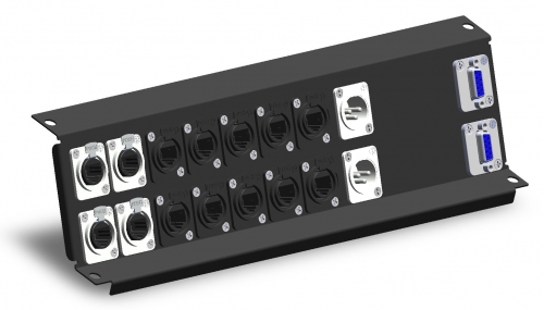 2*XLR3M, 10*RJ-45, 4*RJ-45 cat6, 2*D-Sub 9-pin |
