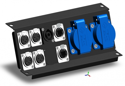 4*XLR3F, 2*RJ-45 cat6-a, 1*Speakon-4 |