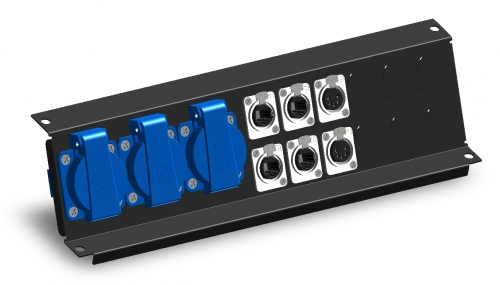 2*XLR5F, 2*RJ-45, 2*RJ-45 cat6-a, 6 отверстие под D-фланец |